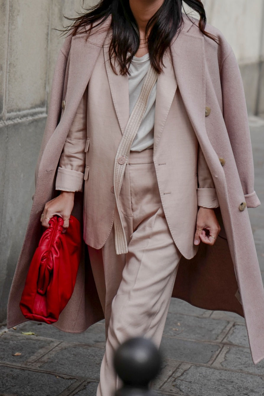 Zu dieser Assoziation verleitet der Anzug von Stella McCartney aber keineswegs. Die Symbiose zwischen dem femininen, fließenden Material in zartem Rosa und dem maskulinen, weiten Schnitt, schafft kaum eine so hervorragend wie sie. Wie ihrer Studienkollegin Phoebe Philo, ehemals Designerin bei Céline, gelingt es auch Stella McCartney in jeder Season auf’s Neue Anzüge mit Wow-Faktor zu kreieren, in der sich Frauen stark und selbstbewusst fühlen können. Ihre Ensemble sind deshalb ein Muss in jedem Kleiderschrank. Mit der roten Bottega Pouch wirkt der Look obendrein frech und frisch. Überzeugt?